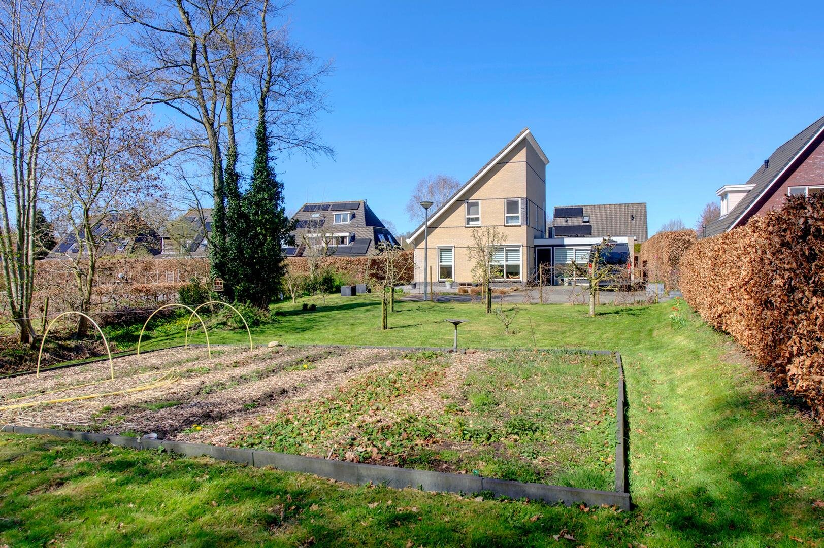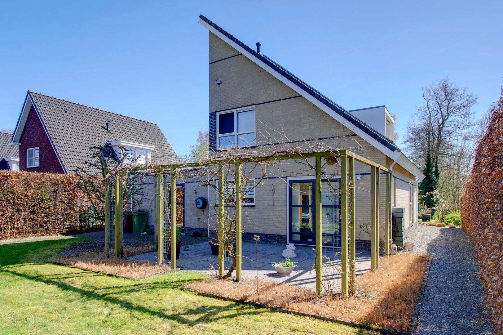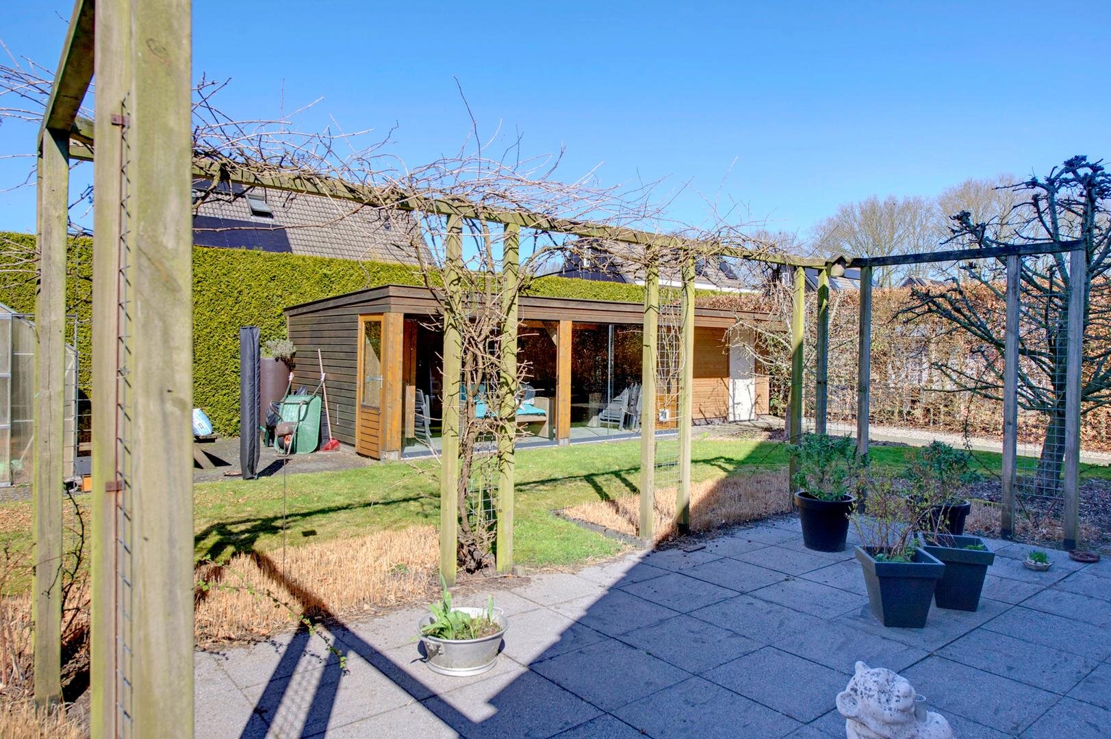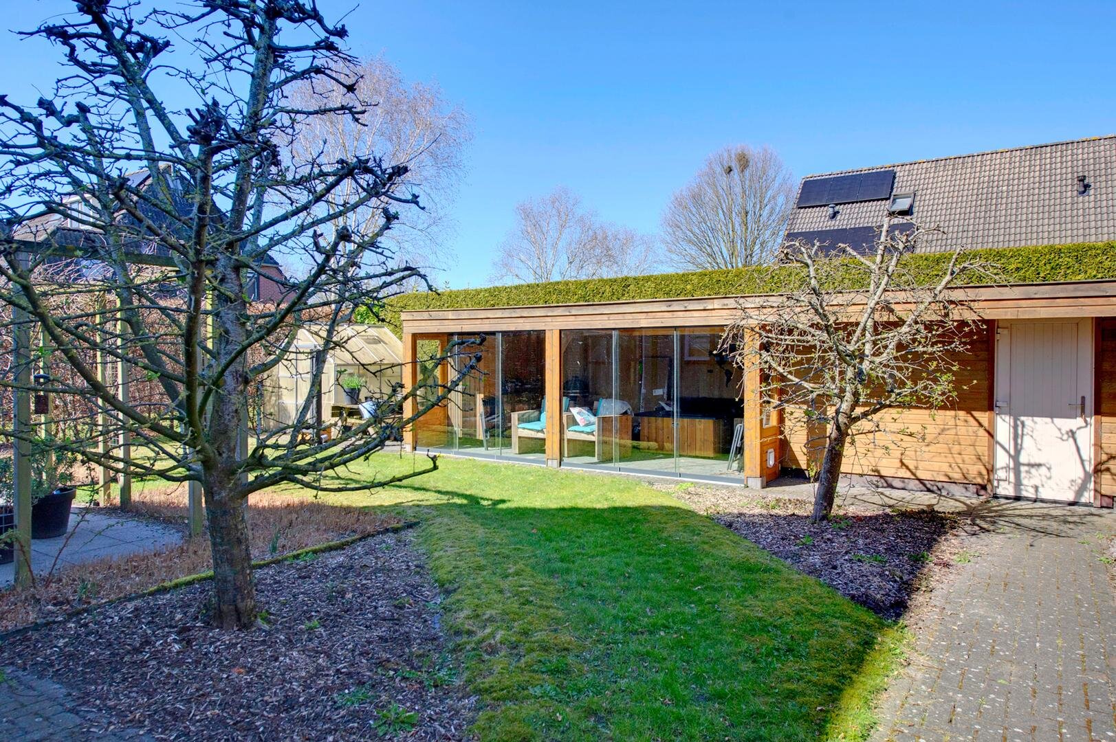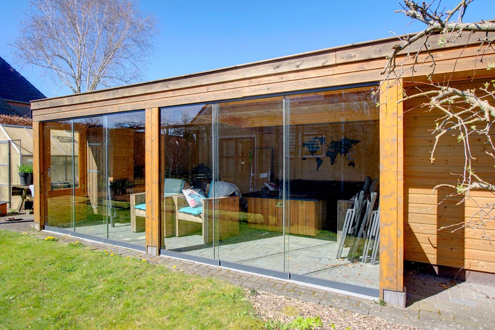 De woning staat op een ruim perceel met een verzorgde tuin rondom, waar privacy en rust centraal staan. In de achtertuin is in 2022 een sfeervol buitenverblijf gerealiseerd met een overdekt terras (ca. 22 m²) voorzien van glazen schuifwanden, een buitenkeuken, terrashaard en vaste meubels. Een plek waar je het hele jaar door kunt genieten van het buitenleven. Aansluitend is er een geïsoleerde bergruimte van ca. 12 m² aanwezig, ideaal voor hobby of opslag.