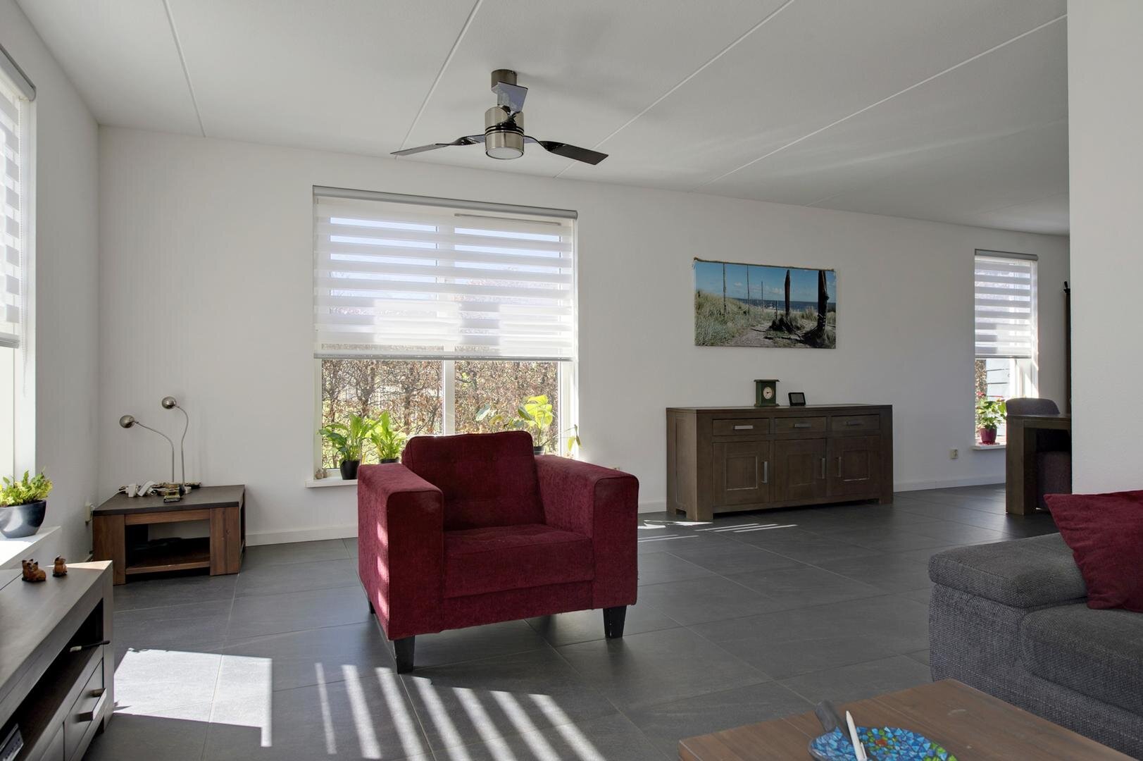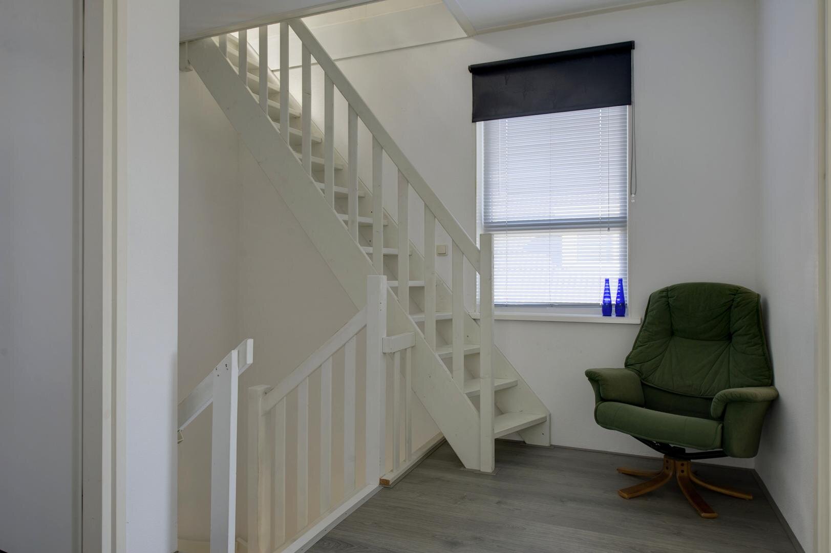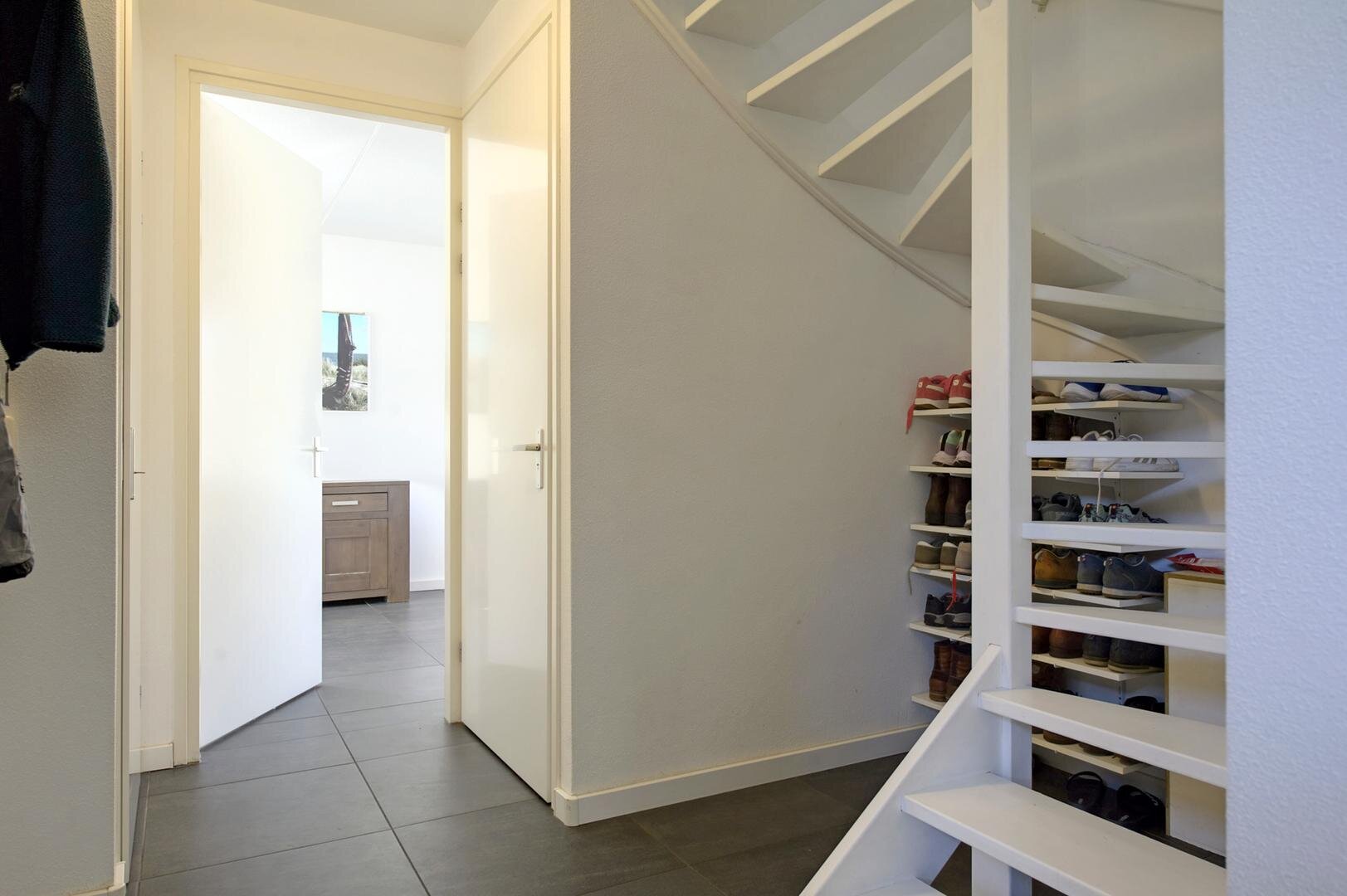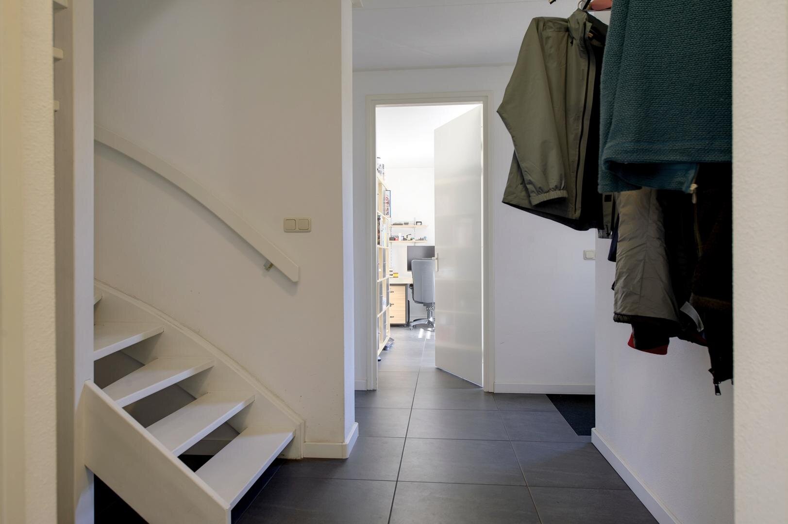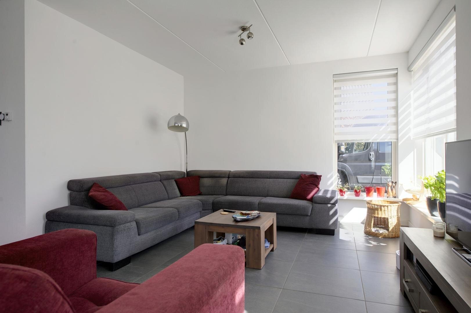 Via de entree kom je in de hal met meterkast, toilet en trapopgang. Vanuit hier bereik je de L-vormige woonkamer van circa 32 m², een lichte en prettige leefruimte met grote raampartijen en een fijne indeling.