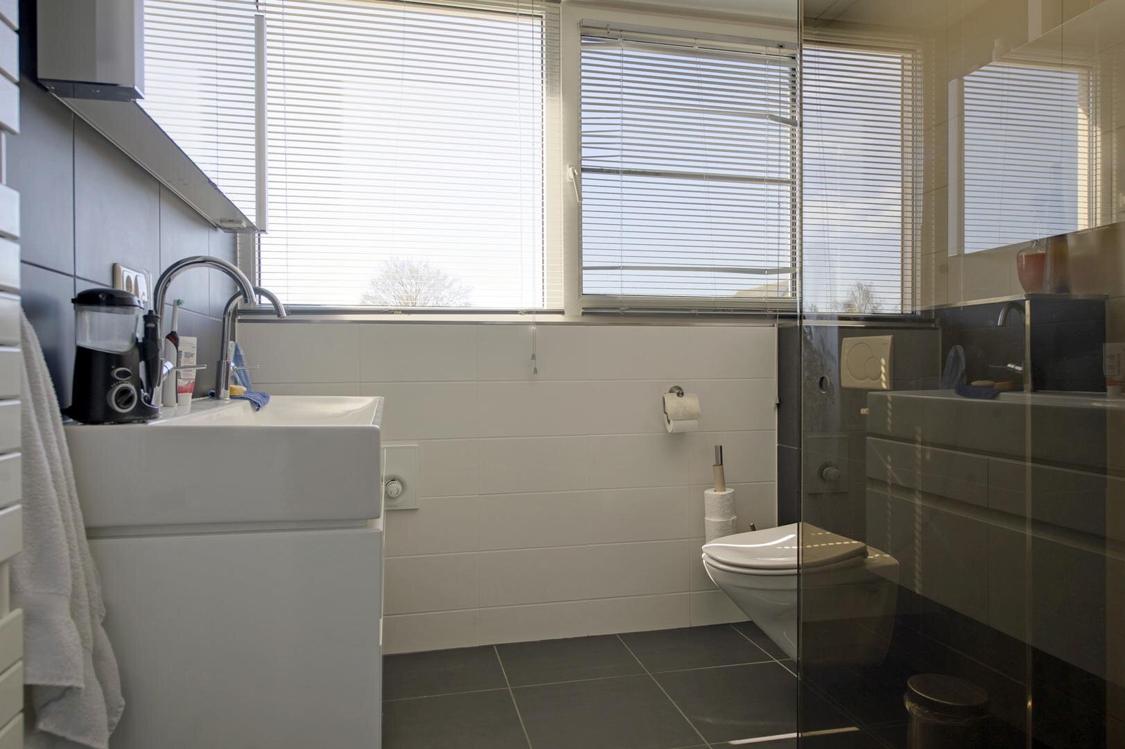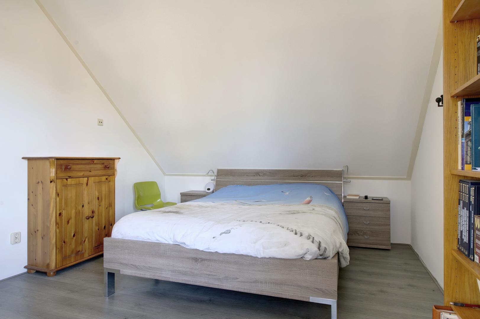 De overloop met daglicht geeft toegang tot drie slaapkamers van circa 6, 11 en 14 m². De grootste slaapkamer is ruim en licht. De badkamer is netjes uitgevoerd en voorzien van vloerverwarming en een dakkapel, wat zorgt voor extra comfort en daglicht.