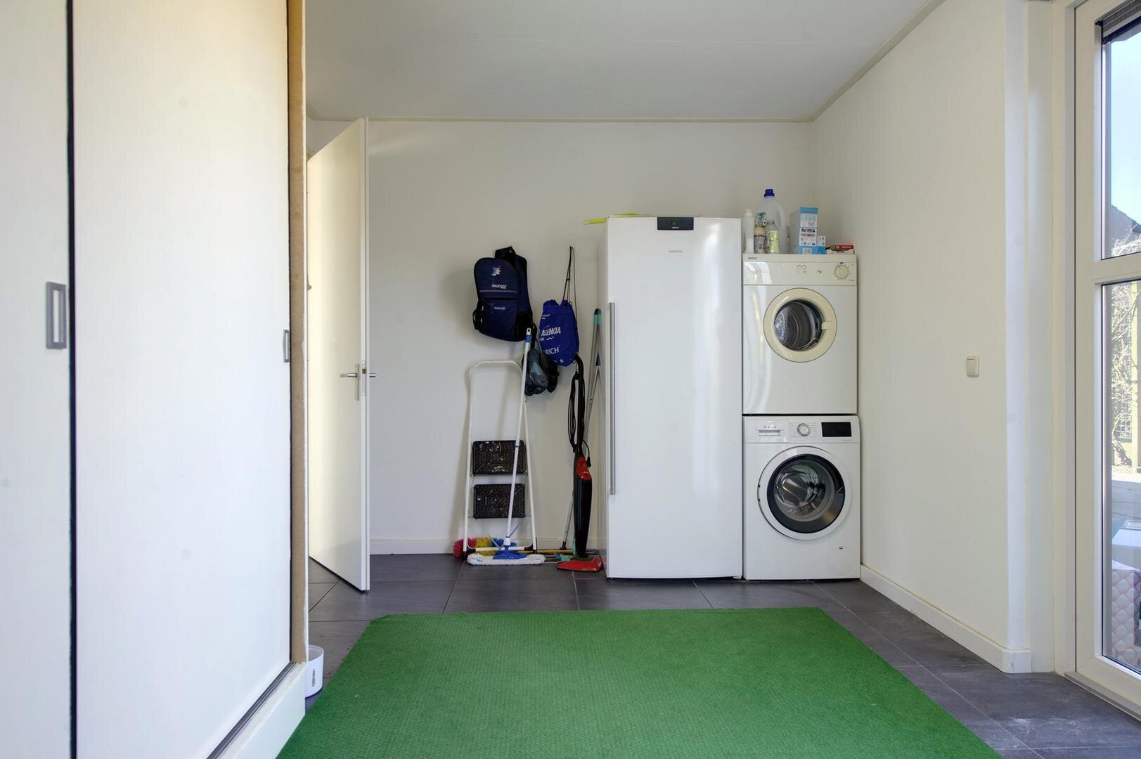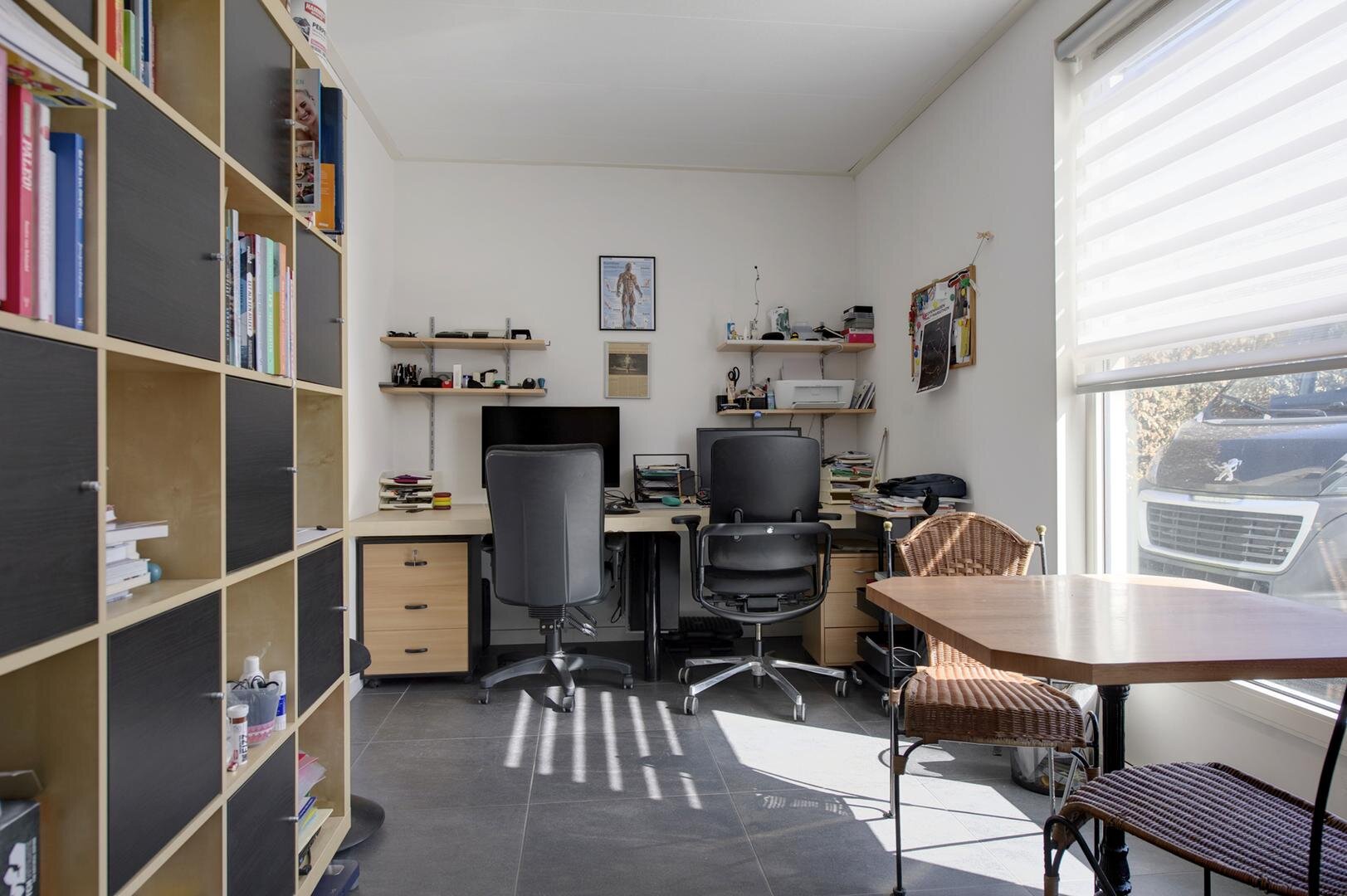 Vanuit de hal is tevens een extra kamer van circa 11 m² bereikbaar. Deze ruimte is multifunctioneel en uitstekend te gebruiken als werkkamer, praktijkruimte of slaapkamer op de begane grond. De aangrenzende ruime bijkeuken (circa 16 m²) met witgoedaansluitingen en openslaande deuren fungeert als praktische achterom.