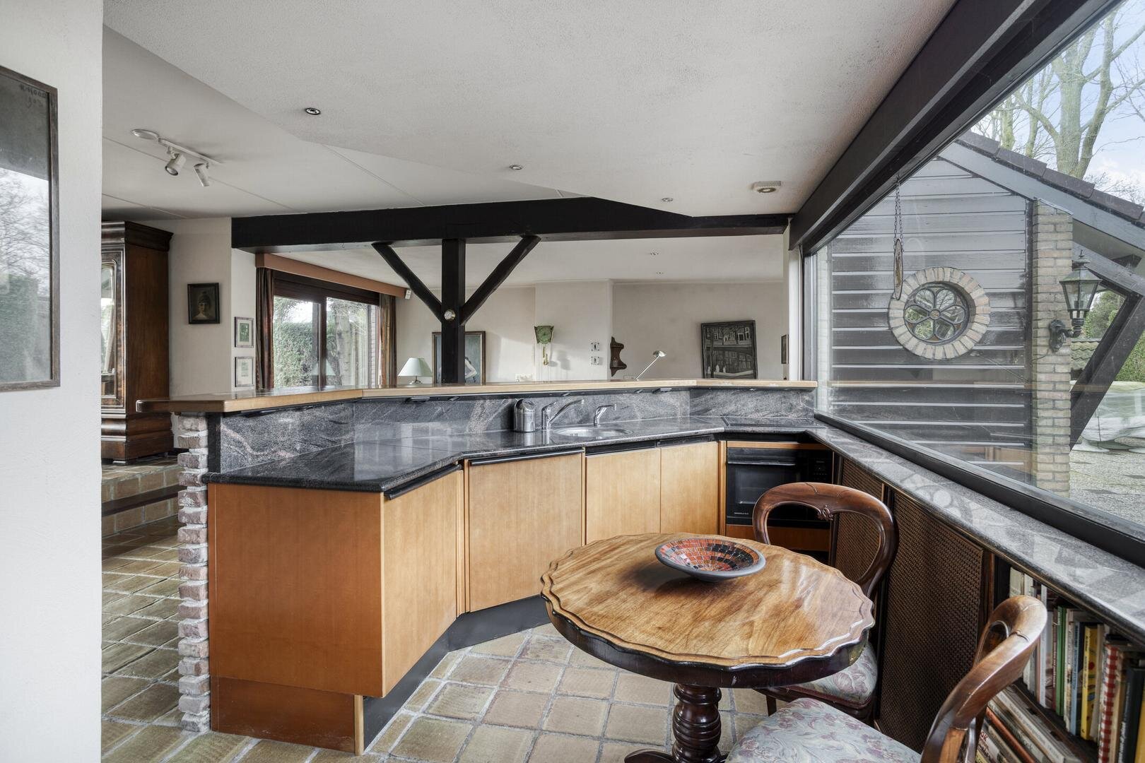 De open keuken is voorzien van een kwalitatief hoogwaardig, doch smaakgevoelige opstelling van Siematic en beslaat zo'n 10 m². De keuken is voorzien van onder andere een inductiekookplaat en staat in direct contact met de woonkamer, wat het geheel tot een prettige leefruimte maakt. Aansluitend bevindt zich een praktische berging van circa 4 m² met toegang tot een witgoedkast en trapkast, ideaal voor voorraad, huishoudelijke apparatuur of extra opslag.