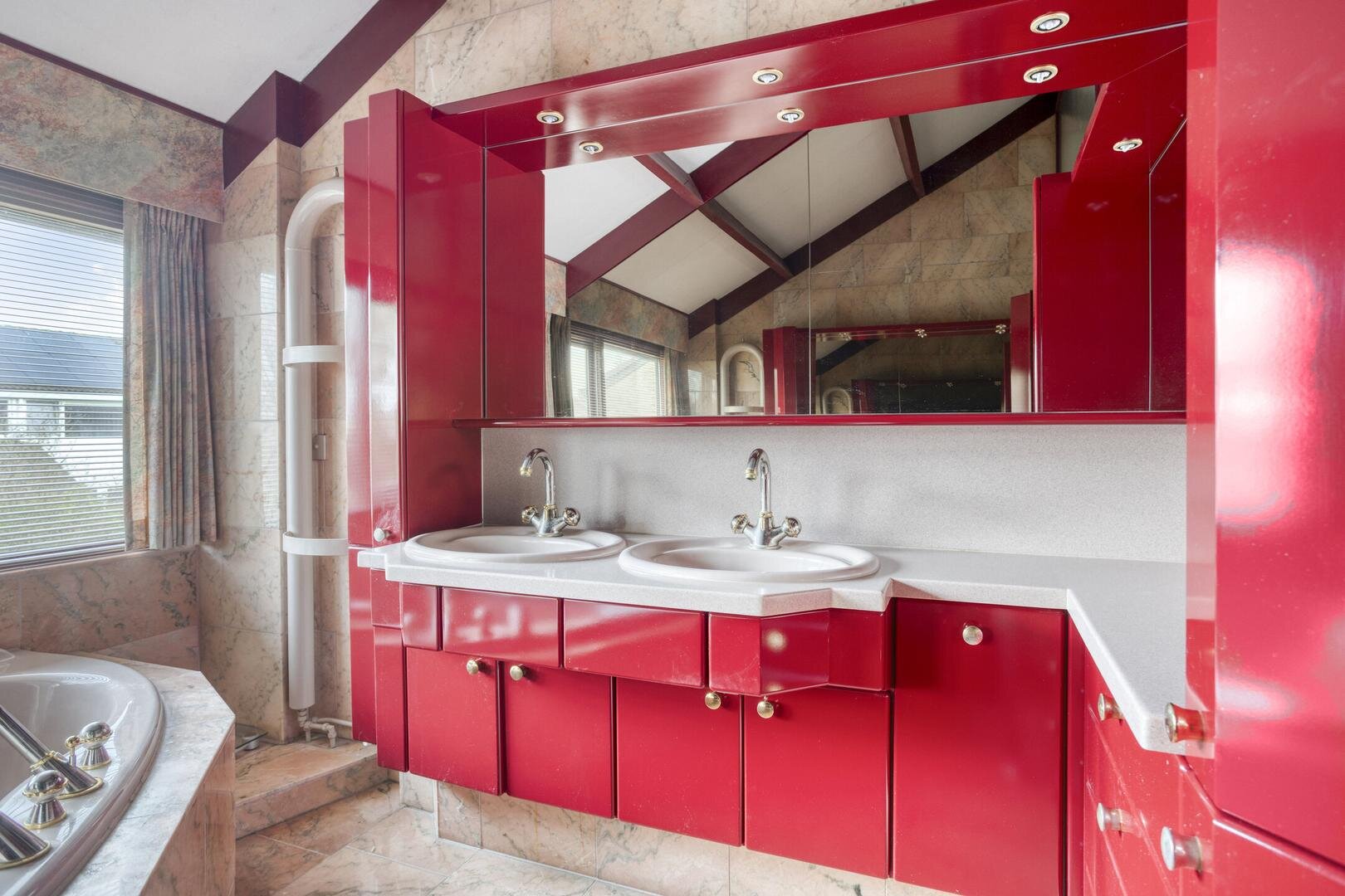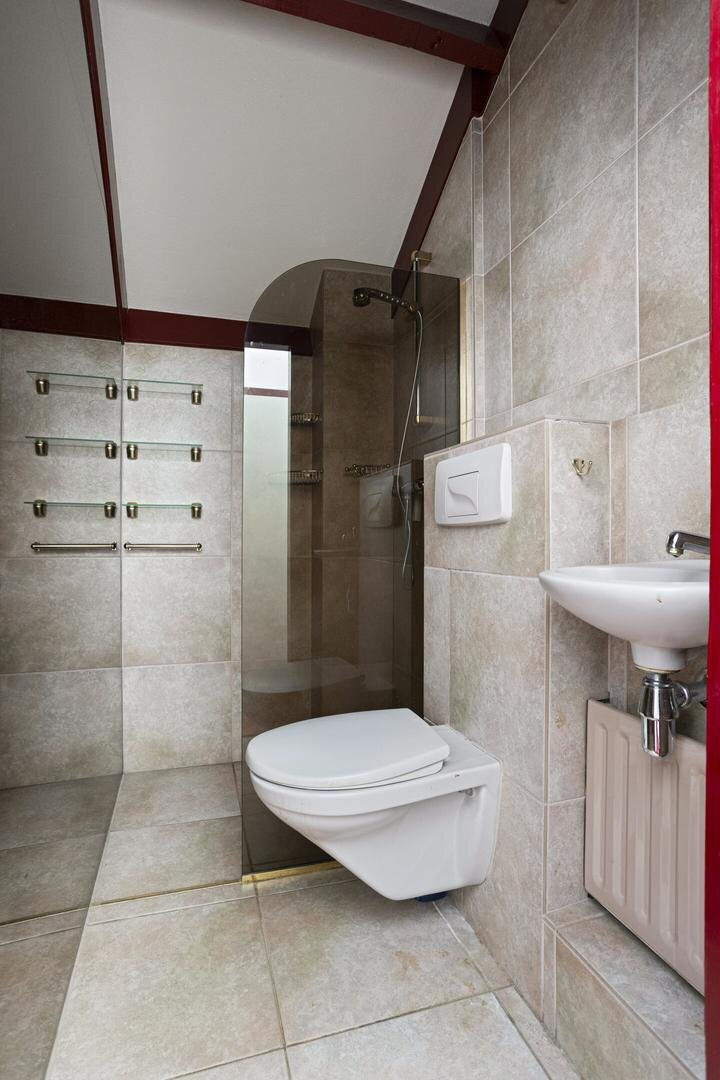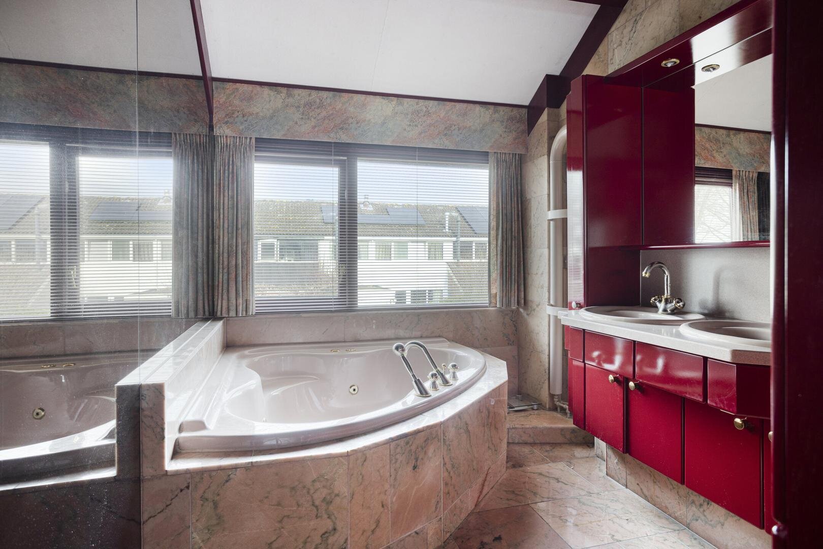 Verdieping: Overloop; 2 slaapkamers (ca. 11 en 12 m²) en een grote en een kleine badkamers. De grote badkamer (ca 6 m²) is voorzien van een ligbad en een royaal badmeubel met een dubbele wastafel. De kleine badkamer beschikt over een toilet en douche.