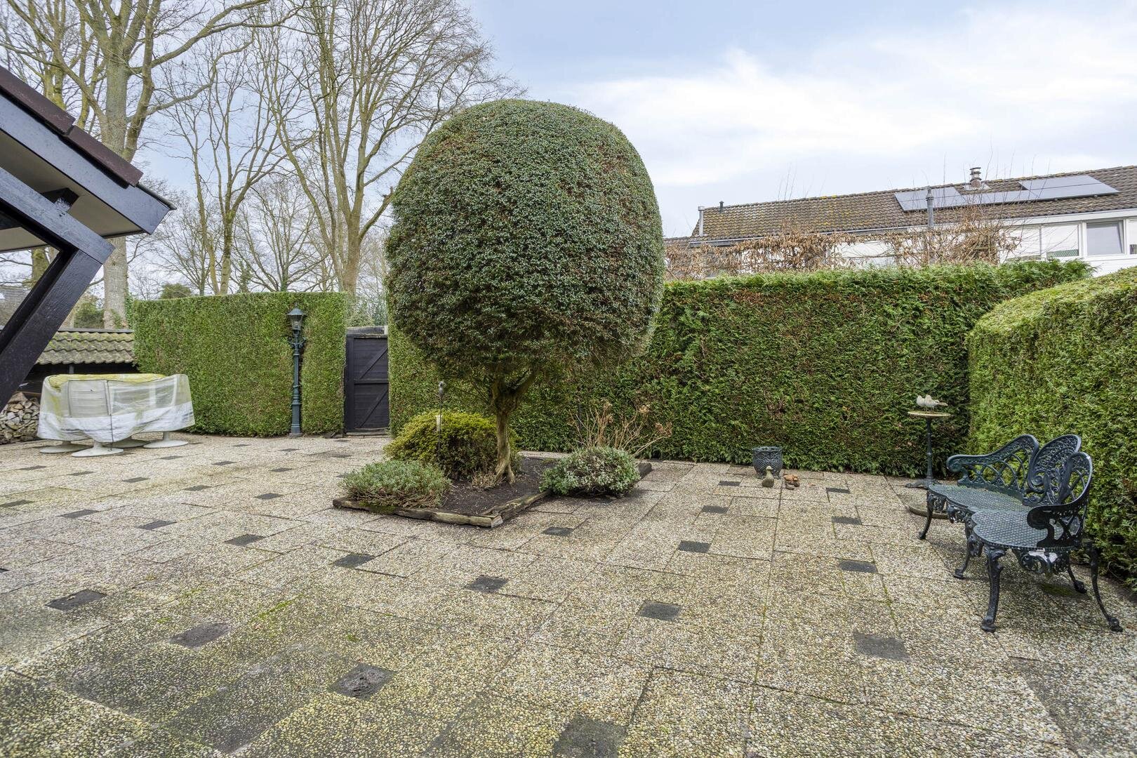 Zowel vanuit de keuken als vanuit de woonkamer is er toegang tot de tuin. De tuin is rond de woning gelegen, biedt volop beschutting en heeft meerdere plekken om zowel van de zon als van de schaduw te genieten. Dankzij de hoekligging ervaar je hier extra privacy en rust. Daarnaast is er een externe berging aanwezig van circa 6 m² welke is voorzien van elektra, ideaal voor fietsen en/of tuingereedschap.