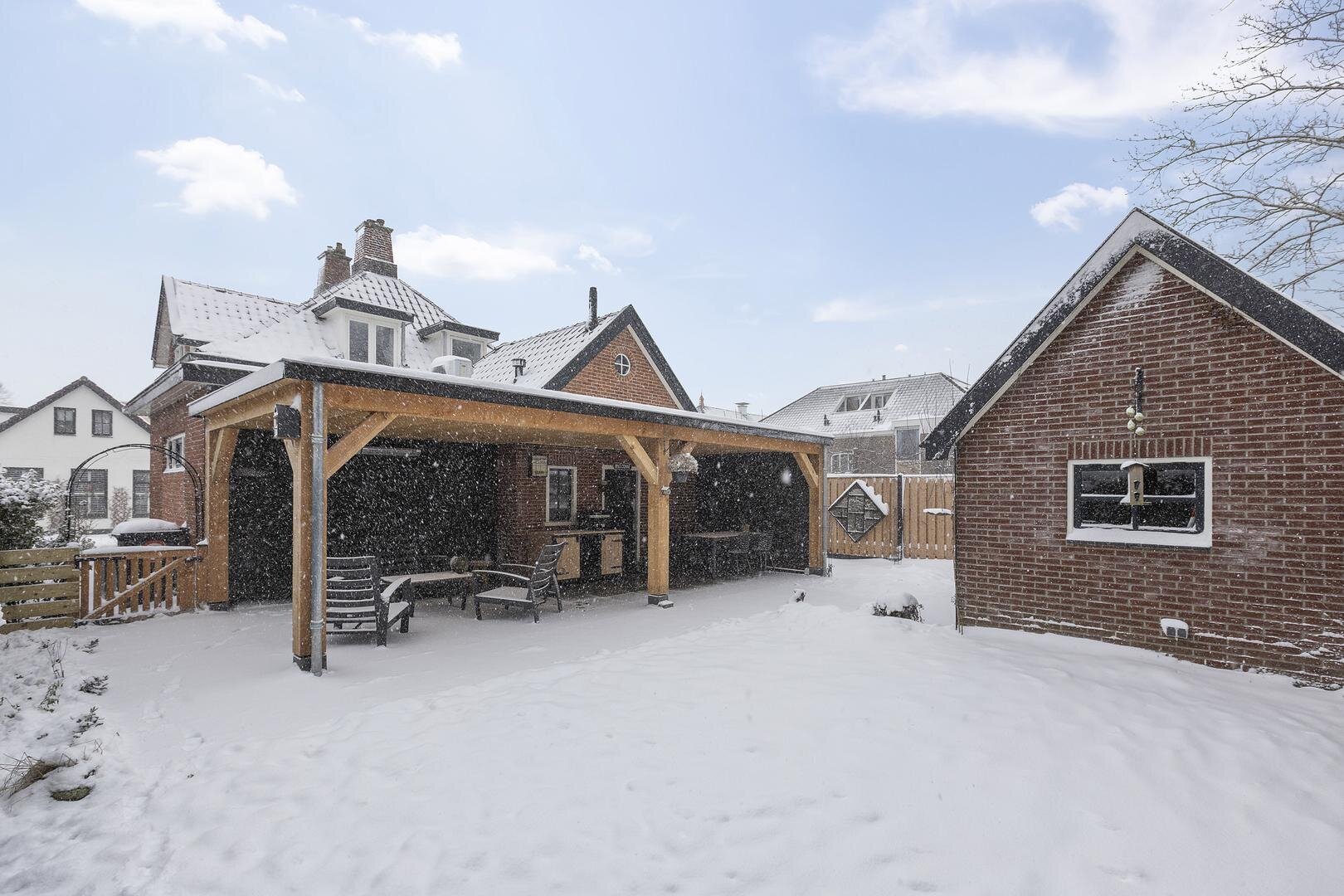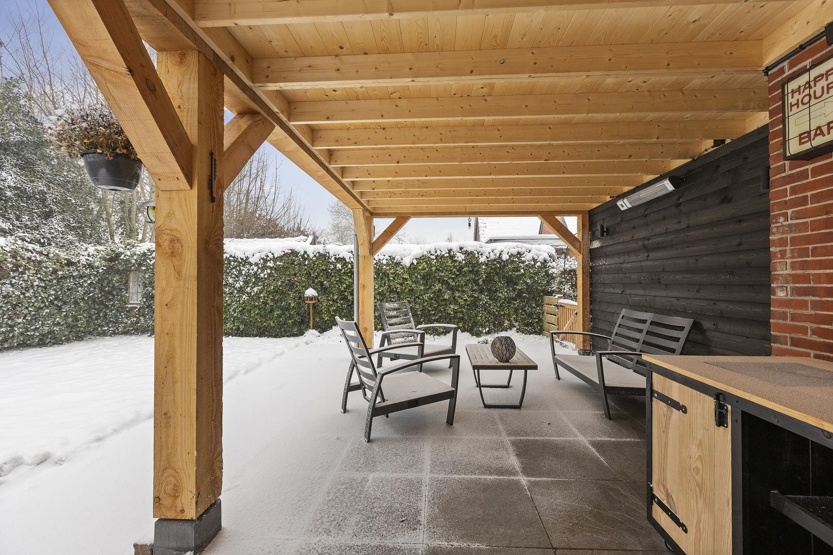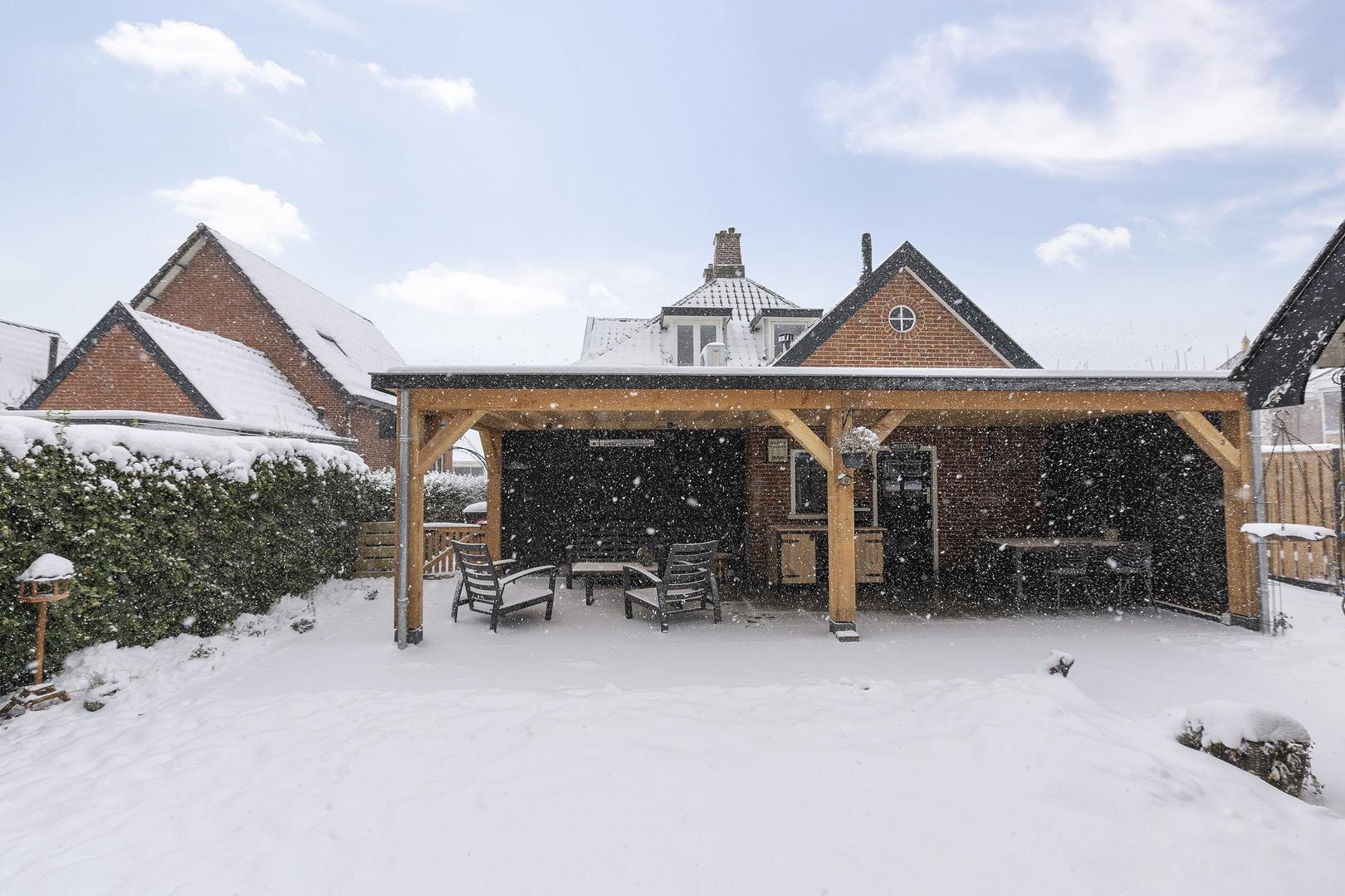 - Nieuwe overkapping met keramische tegels;