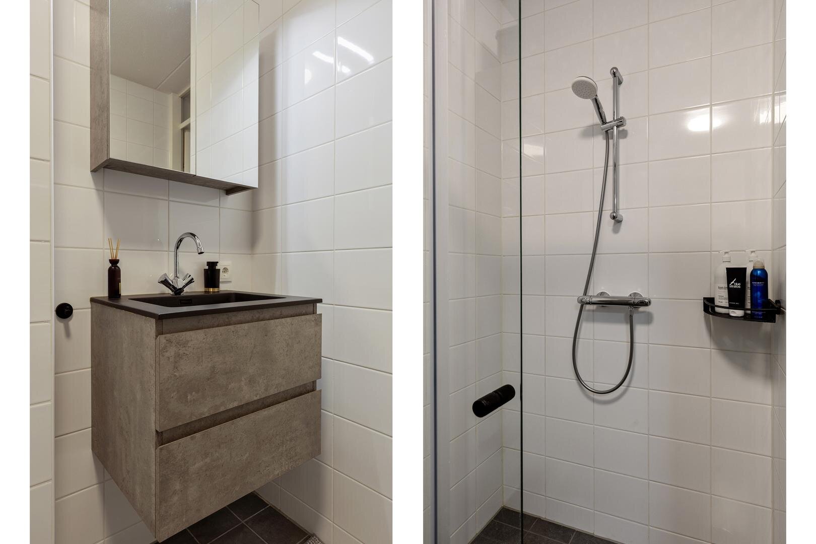Appartement: entree/hal, woonkamer met open keuken (samen ca. 22 m²) voorzien van een moderne keukenopstelling met inductiekookplaat, afzuigkap, koelkast en vaatwasser. De bergruimte beschikt over een warmtepomp, mechanische ventilatie en witgoedaansluiting. De ruime slaapkamer is ca. 14 m² en de zeer nette badkamer beschikt over een inloopdouche, wastafelmeubel en toilet.