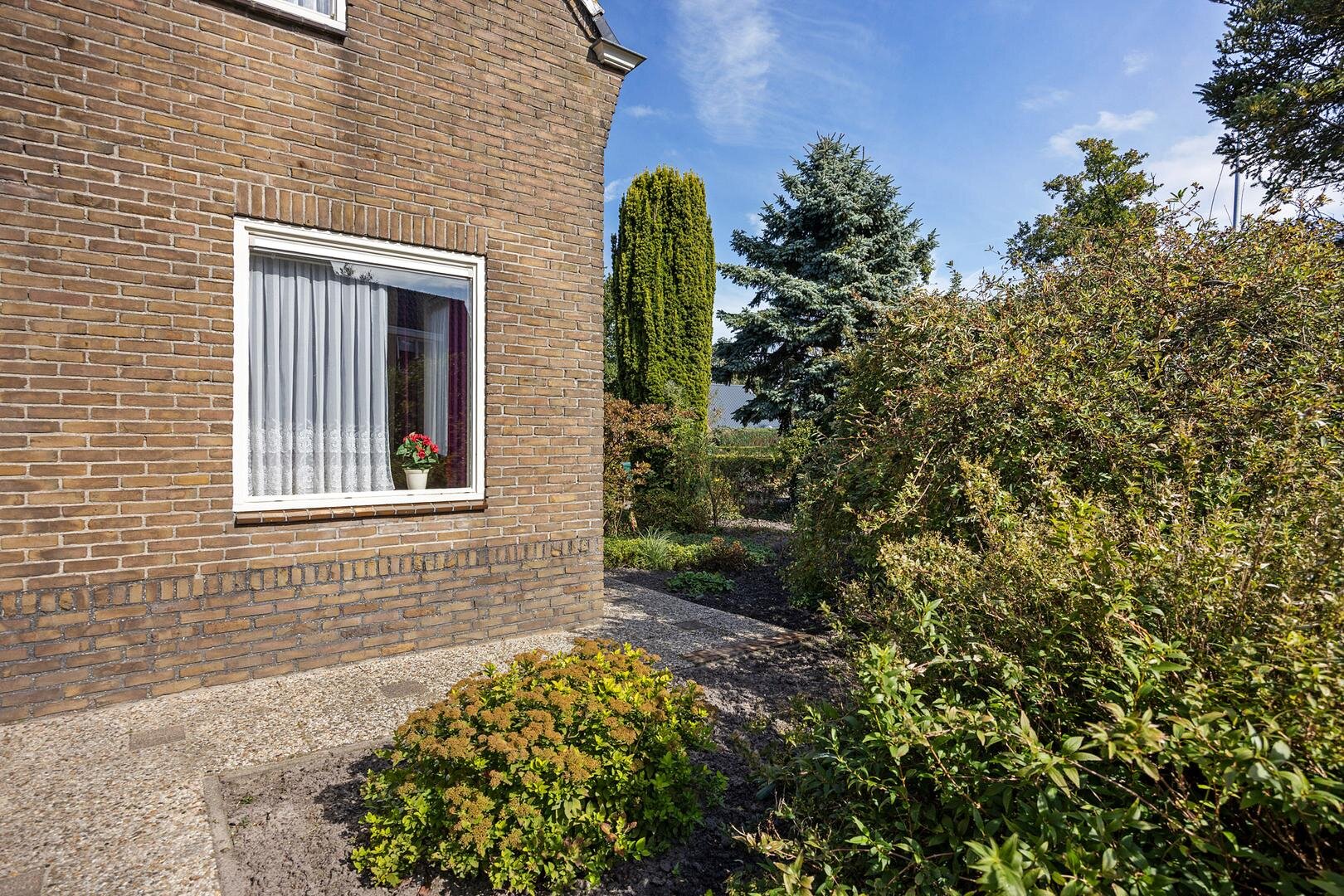 Het geheel is gelegen op een ruime kavel van 800m² met een grote bloementuin, moestuin en een terras van ca. 20m².