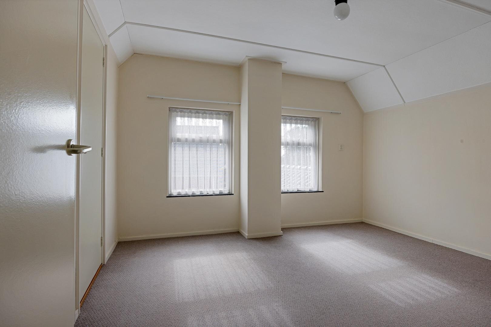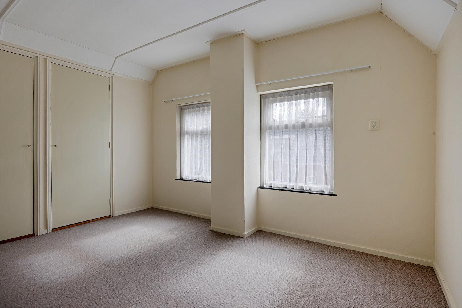 Overloop, twee slaapkamers (ca. 12m² en 9 m²) en vier vaste kasten en indien gewenst mogelijkheden om een (tweede) badkamer te realiseren.