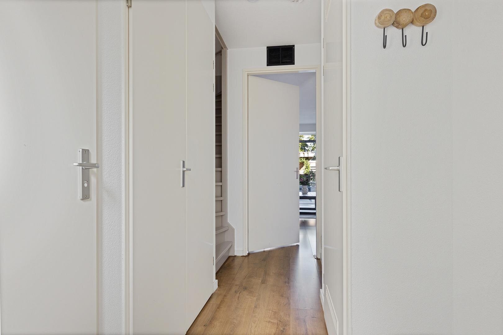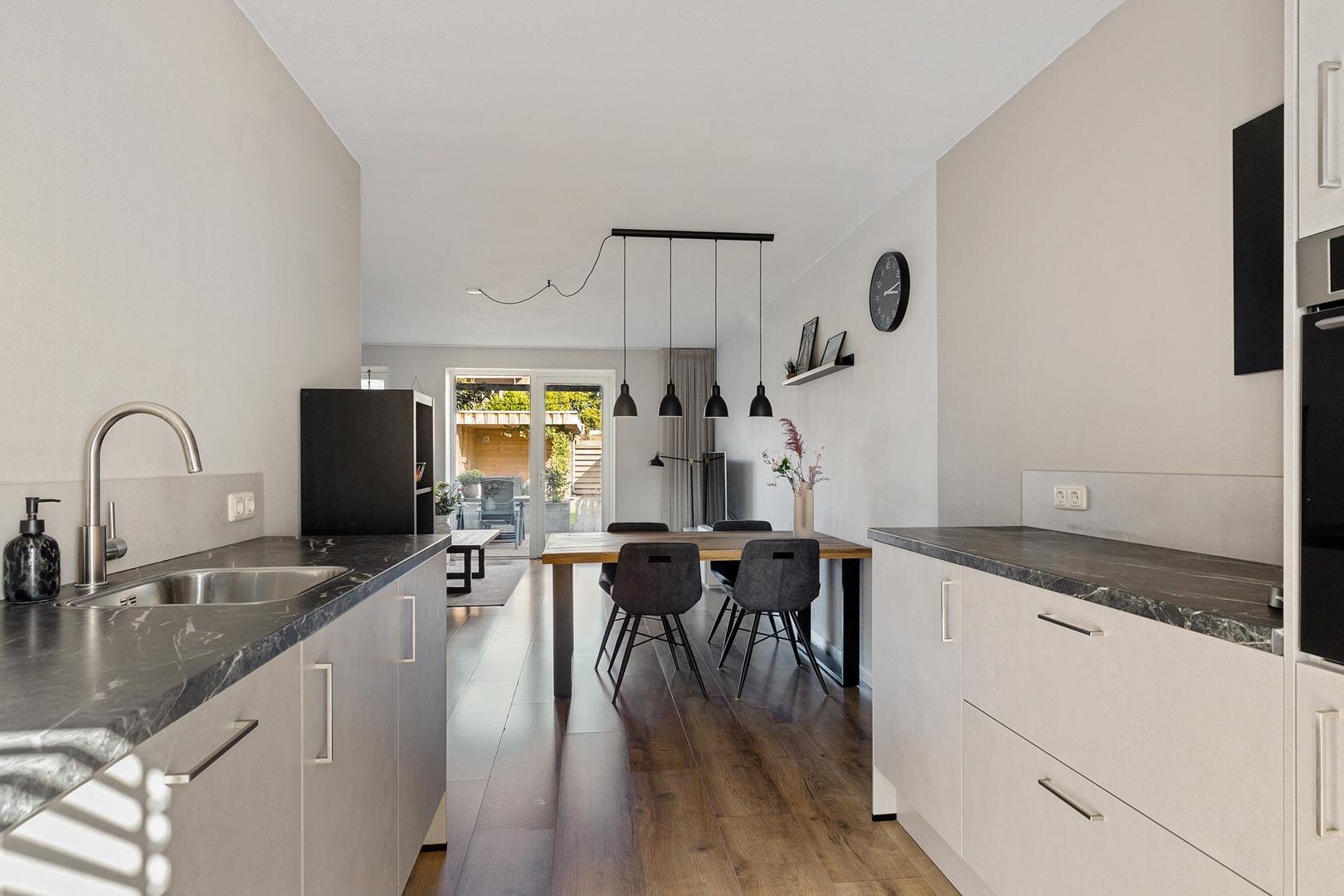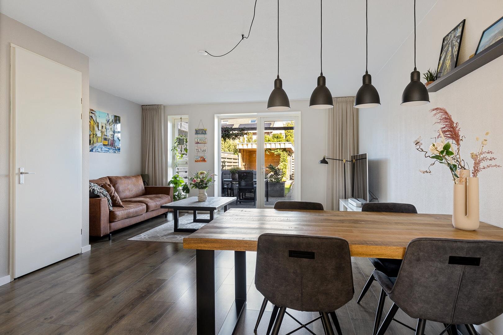 Begane grond: Je komt binnen in de hal met toilet, meterkast en cv-bergkast. Vanuit de hal loop je door naar de lichte, tuingerichte woonkamer met toegang tot de achtertuin. Aan de voorzijde vind je de moderne open keuken (2023) in parallelopstelling, compleet met inbouwapparatuur en een inductiekookplaat met geïntegreerde veldafzuiging. De zonnige achtertuin is onderhoudsvriendelijk aangelegd en beschikt over een achterom en een fraaie houten overkapping.