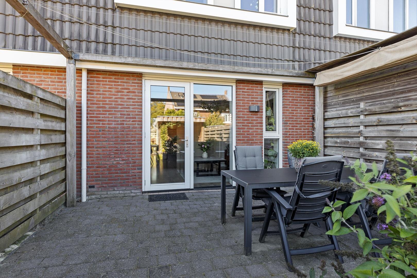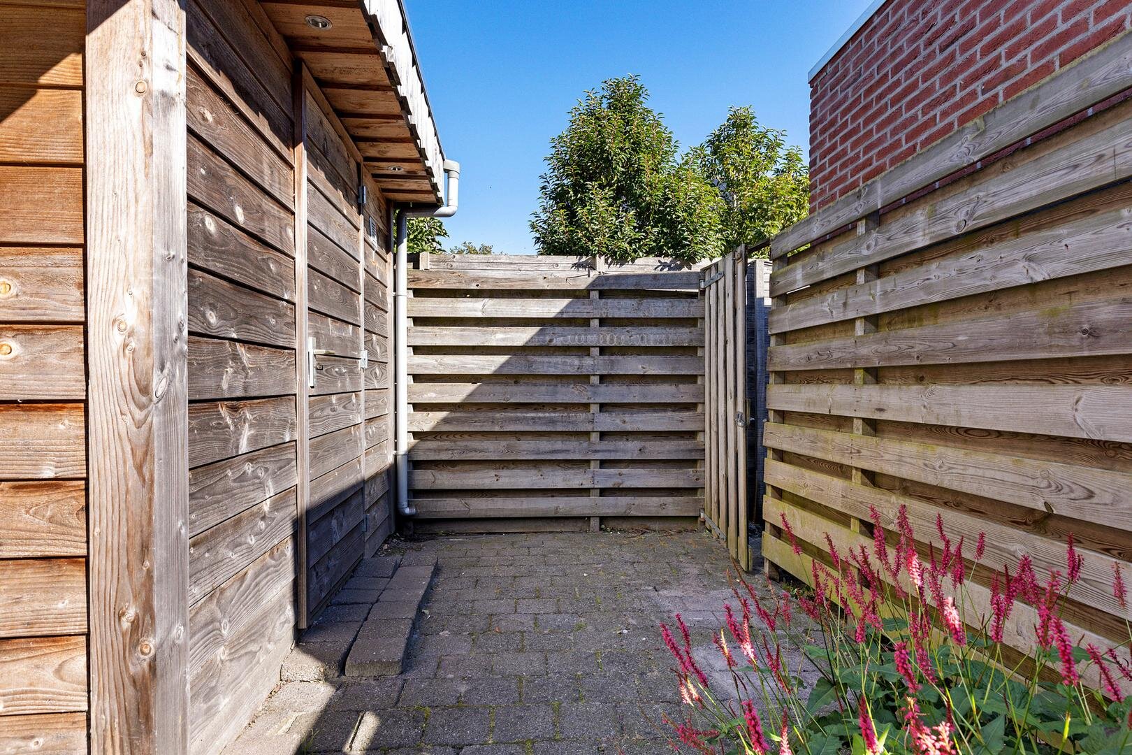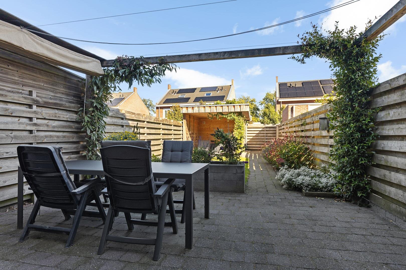 De achtertuin is verzorgd aangelegd en onderhoudsvriendelijk, zodat je er vooral van kunt genieten. Achterin de tuin staat een vrijstaande houten berging (ca. 6 m²) met elektra en een achterom – ideaal om fietsen en tuingereedschap netjes op te bergen. Extra pluspunt is de aangebouwde houten overkapping: een sfeervolle plek waar je het hele jaar door heerlijk kunt zitten. Dankzij de verlichting kun je hier ook ’s avonds nog heerlijk genieten van je tuin.