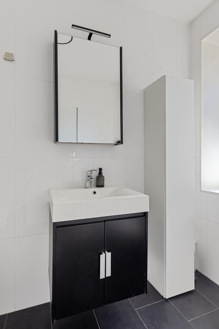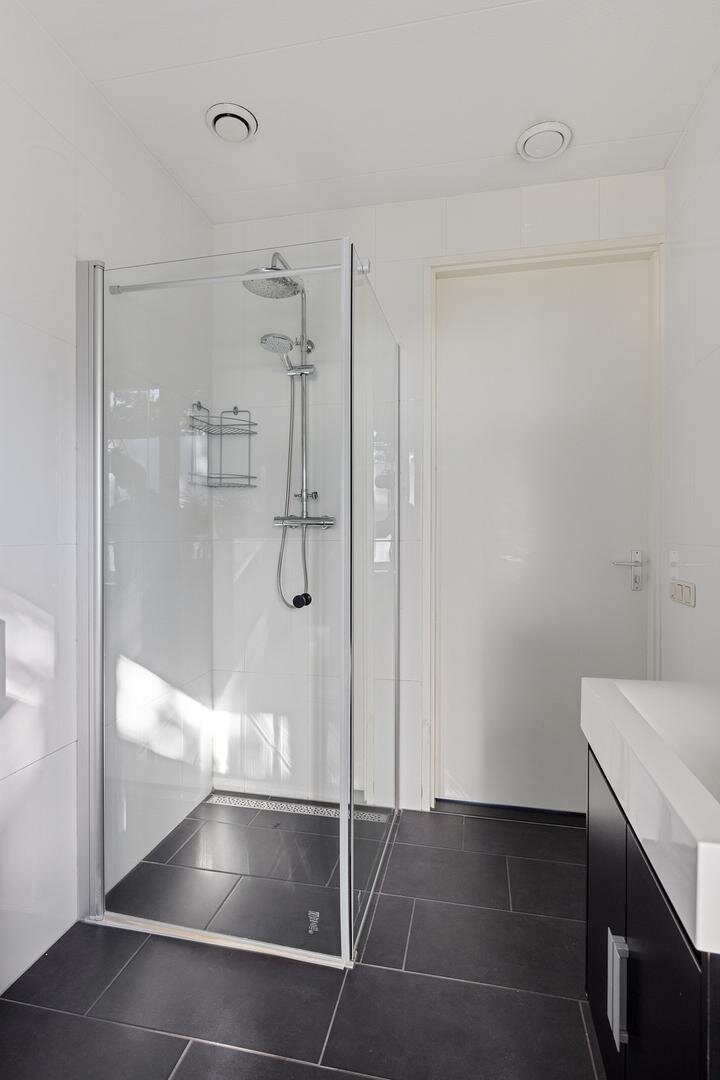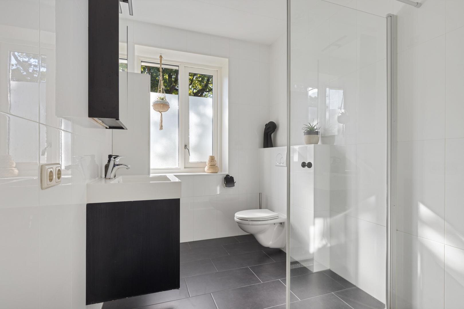 Eerste verdieping: De eerste verdieping biedt drie slaapkamers van ca. 6, 13 en 15 m². De badkamer is netjes afgewerkt en voorzien van daglicht, een douchecabine, hangend toilet en wastafelmeubel met spiegelkast.