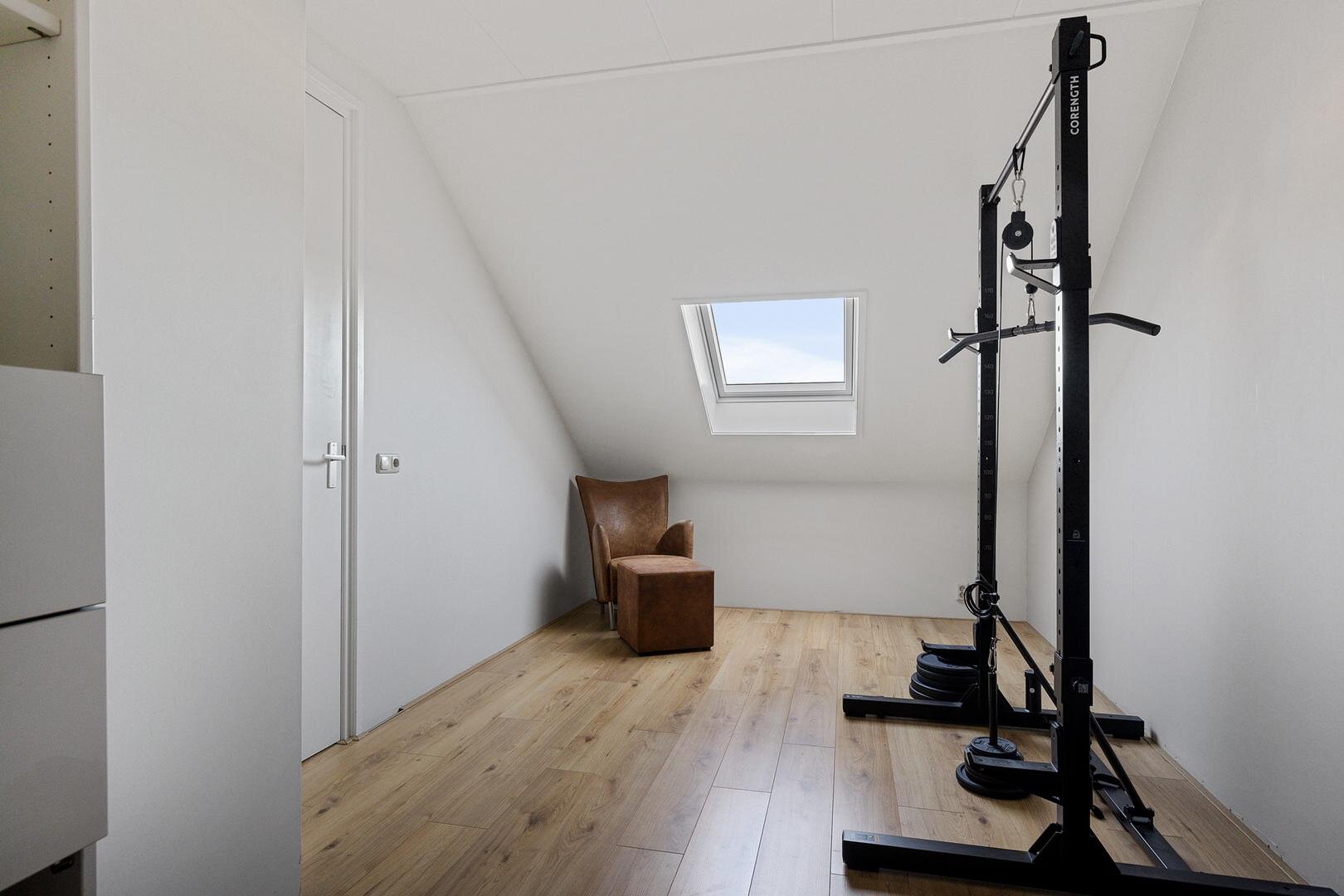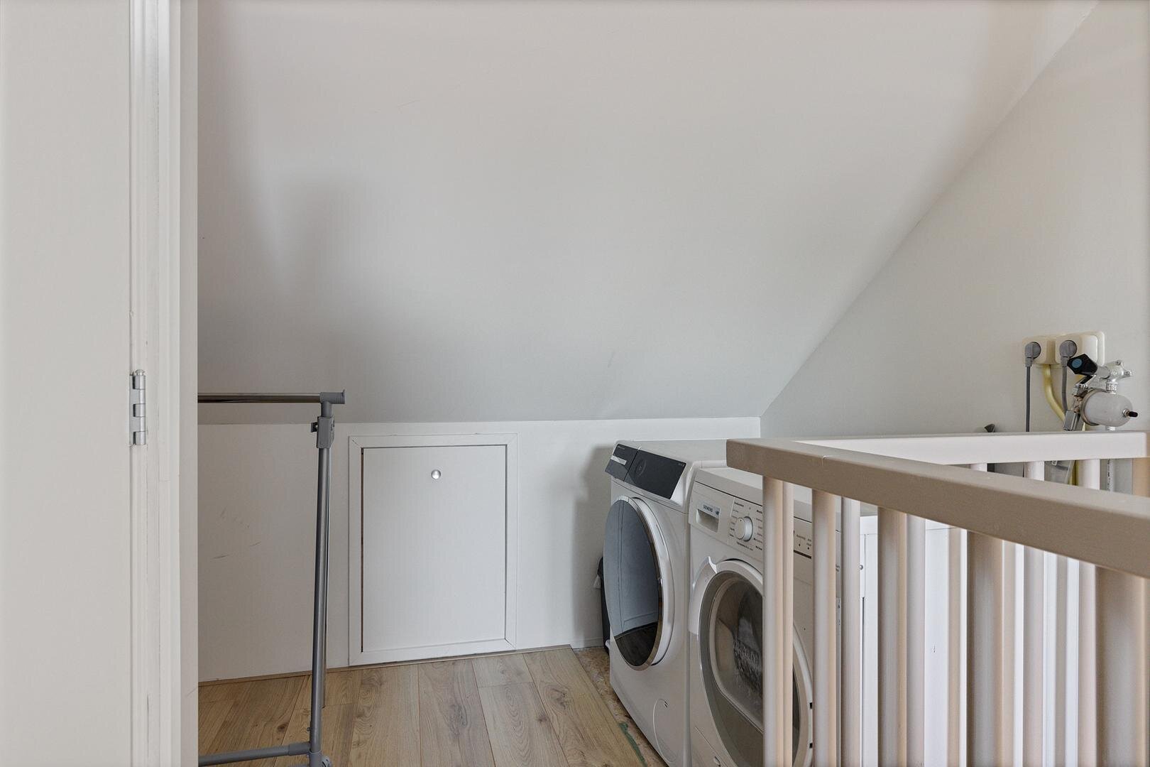 Tweede verdieping: Via de vaste trap kom je op de tweede verdieping. Deze is volledig afgewerkt en ingericht met een ruime vierde slaapkamer (ca. 15 m²) en een lichte overloop met plek voor de wasmachine en droger.