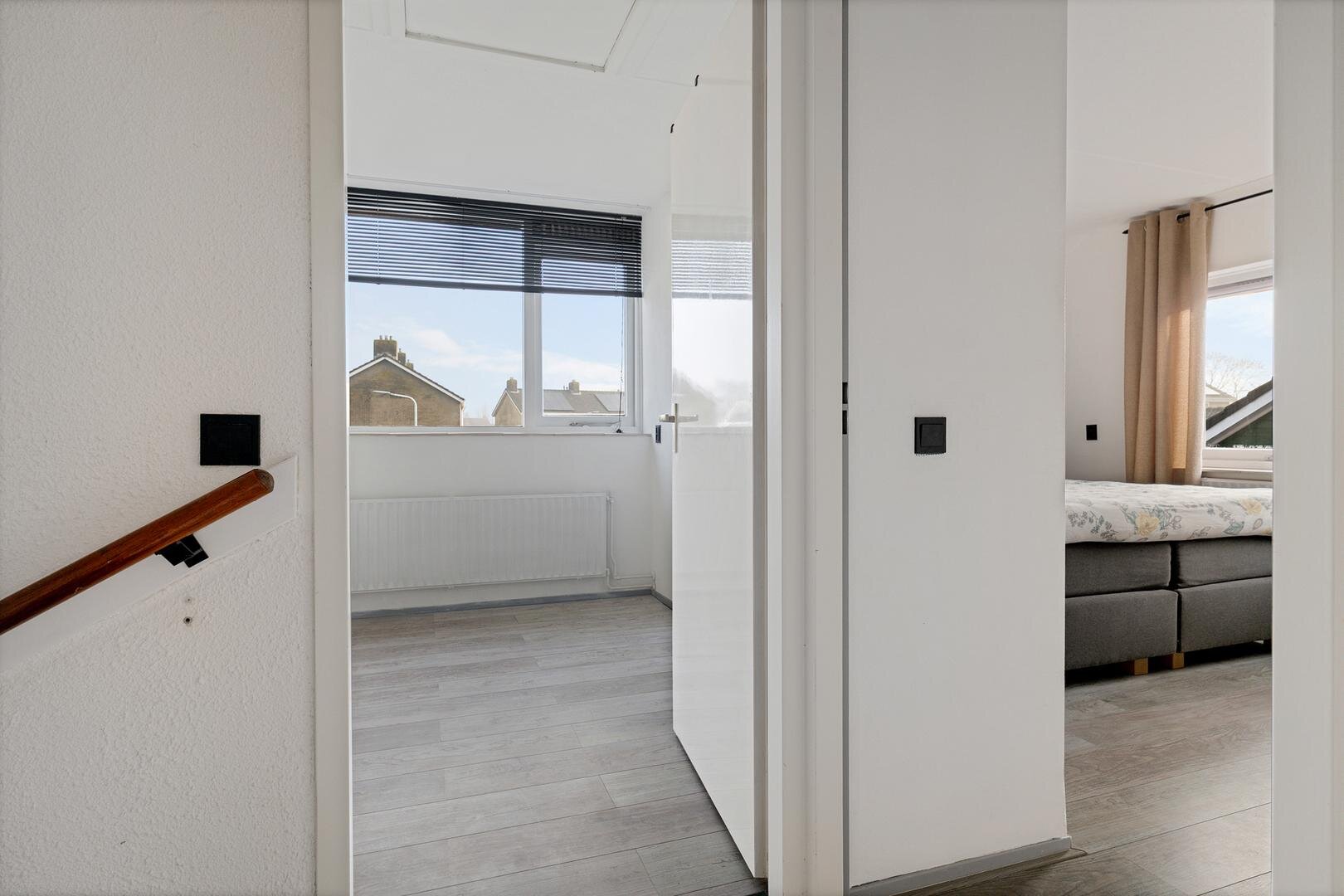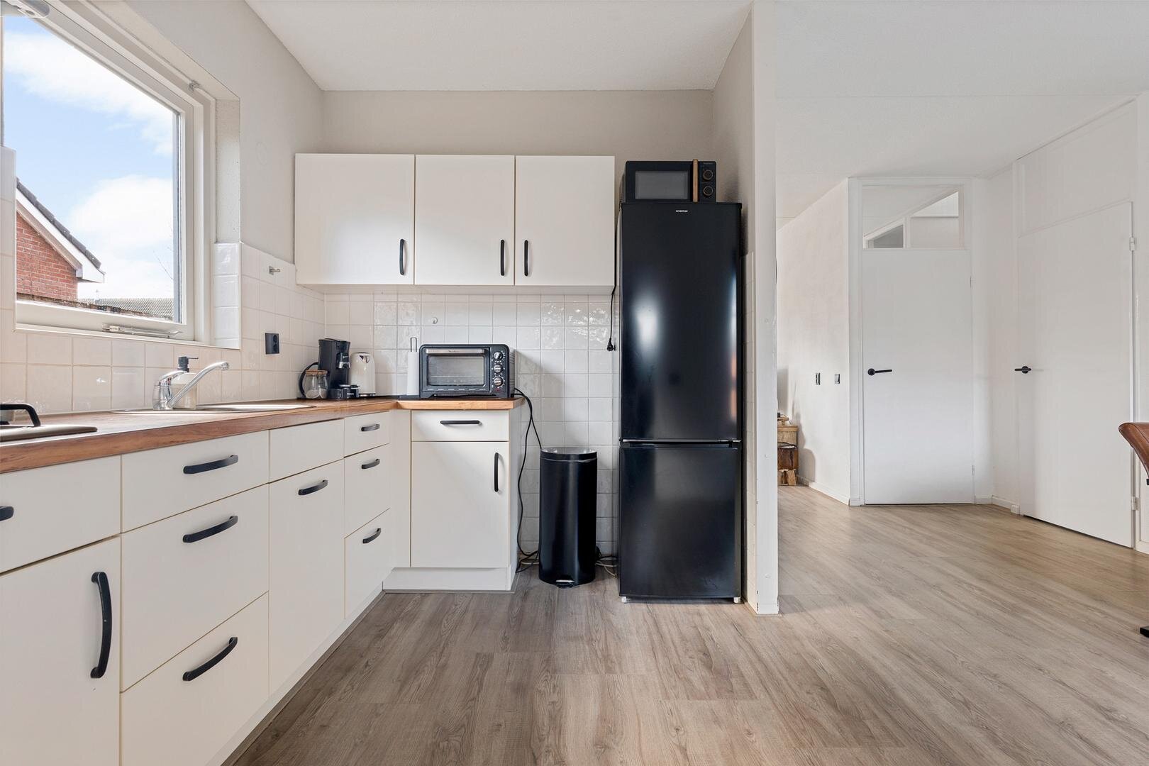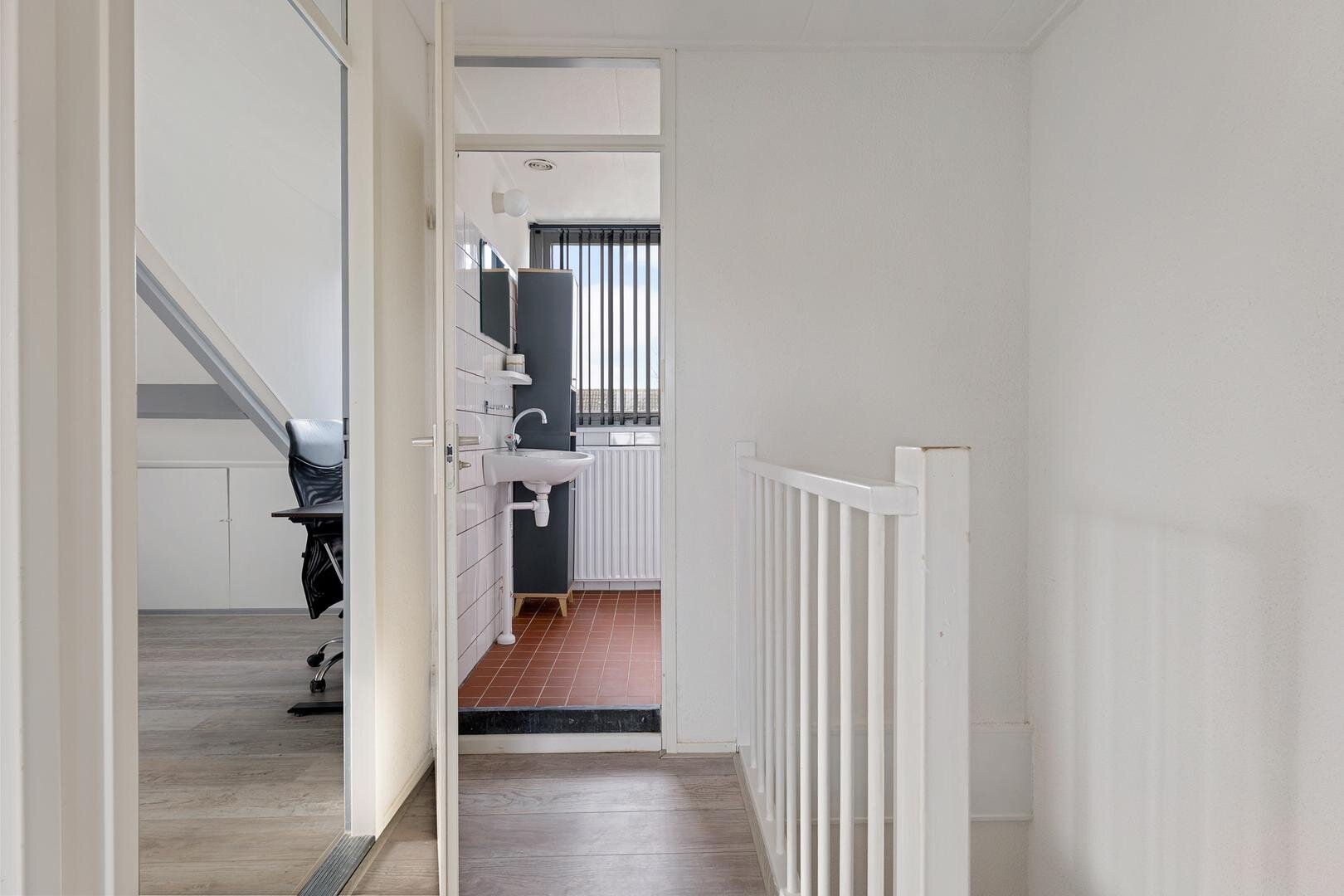 Binnen tref je een praktische indeling met een lichte woonkamer en een open keuken. Op de eerste verdieping bevinden zich drie slaapkamers en een badkamer. Daarnaast is er nog een handige bergzolder bereikbaar via een vlizotrap.