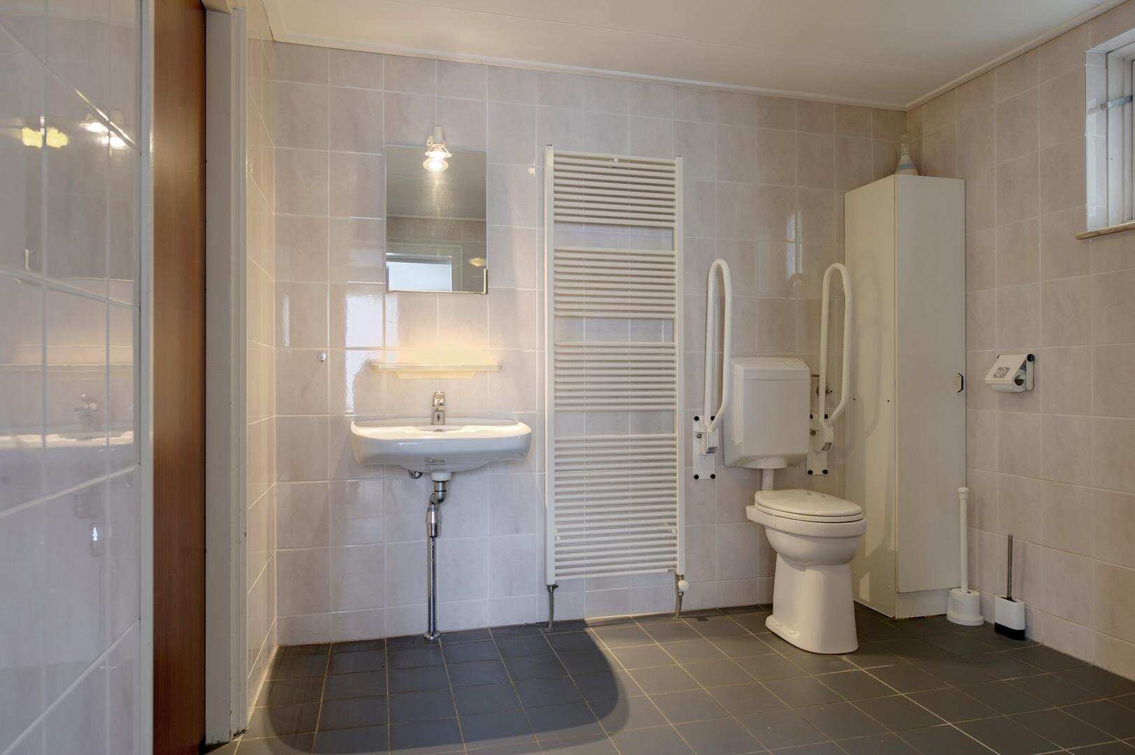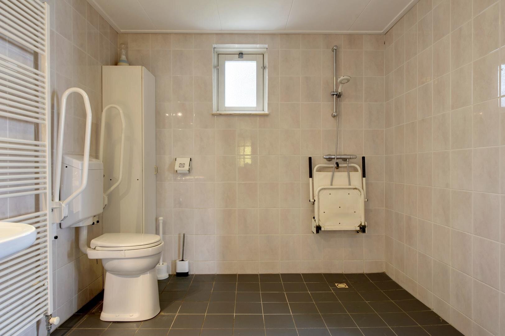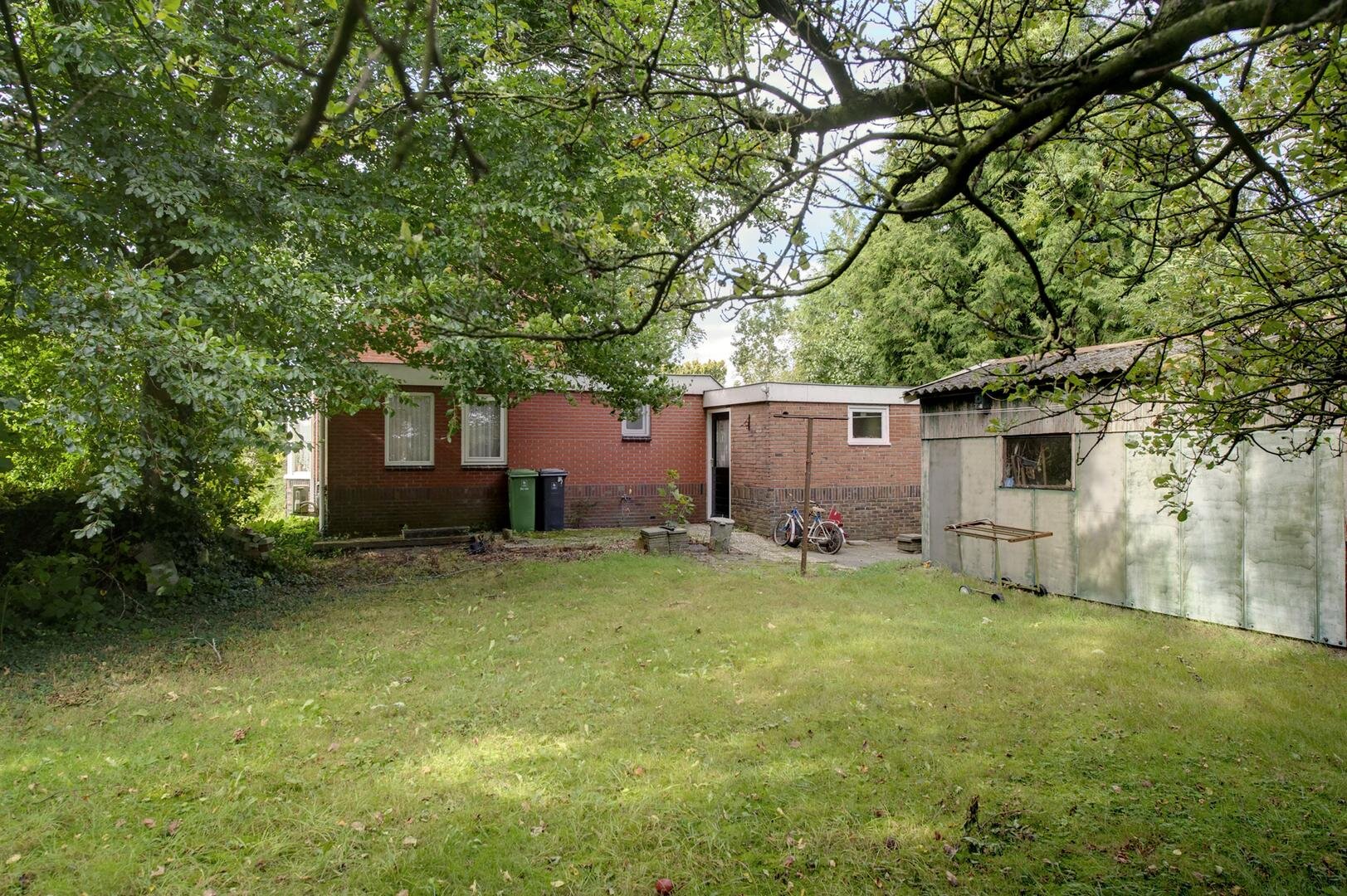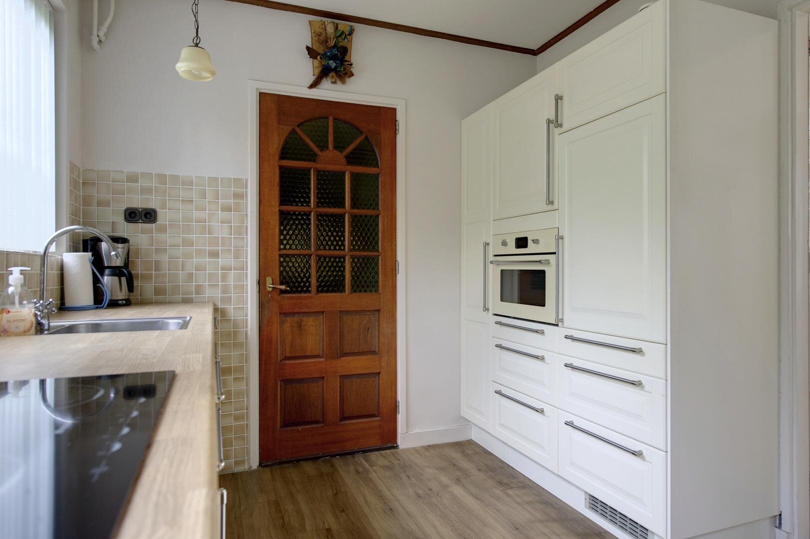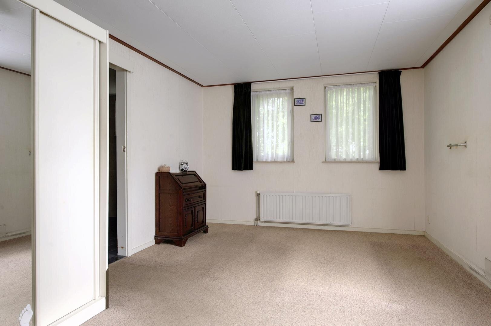 Begane grond: Hal/entree; dichte keuken met toegang tot kelder en een vaste kast; woonkamer-en-suite met inbouwkasten en erkers; aangebouwde slaapkamer (ca. 14 m²) met aangrenzende badkamer met douche, toilet en wastafel; bijkeuken met deur naar de eerder genoemde keuken alsmede een binnendoor naar de garage met elektrisch bedienbare sectionaaldeur en een loopdeur naar de tuin.