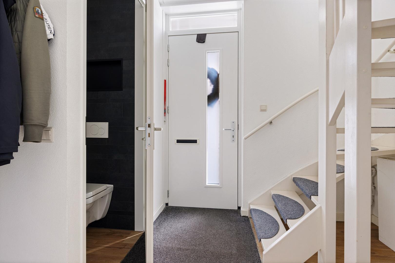 Via de zijentree kom je in de hal met meterkast, toiletruimte en trapopgang. Vanuit hier bereik je de ruime en lichte woonkamer. De grote raampartijen aan de voorzijde zorgen voor een prettige lichtinval en bieden een mooi vrij uitzicht over het water.